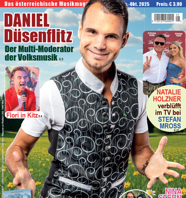 Daniel Düsenflitz, der Multi-Moderator der Bierzelte und Schlager-Konzerthallen, ziert das Cover der neuen Musikpost. Diese ist ab 29. August im Zeitschriftenhandel erhältlich oder kann jetzt noch schnell im Abo bestellt werden. Die Musikpost Reporterinnen und Reporter waren den ganzen Sommer unterwegs, um die schönsten Feste, TV-Sendungen und Volksmusikveranstaltungen zu besuchen und darüber zu berichten. Dazu gibt es zahlreiche Reportagen und Berichte über die kleinen und großen Stars der Szene, von der Volksmusik über den Schlager bis zu Rock und Wienerlied.